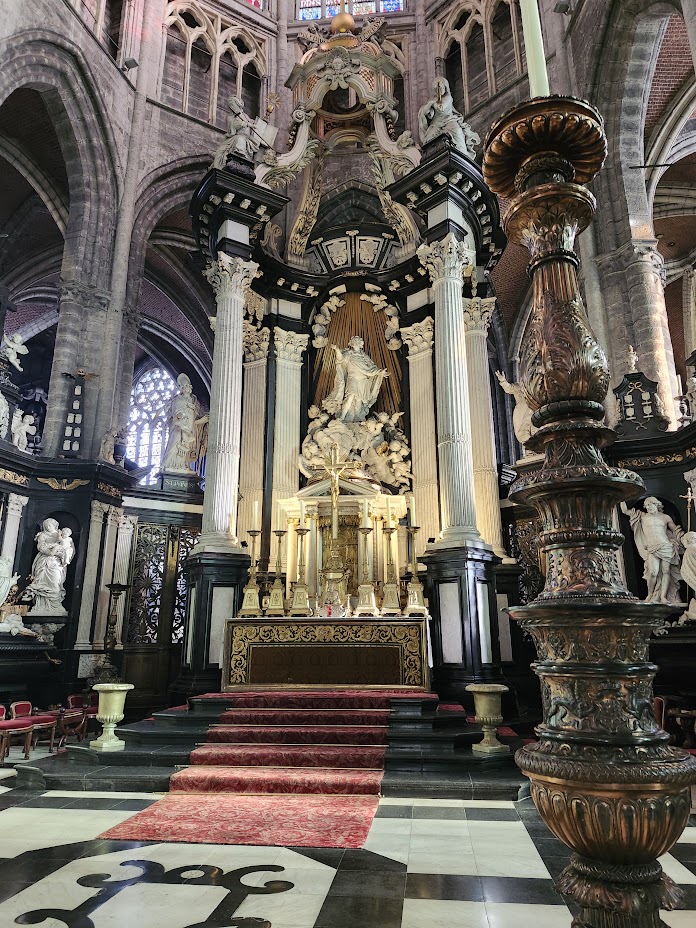 We then continued along, stopping at various locations like the City Hall, the Old Civil Registry, and the Basilica of the Holy Blood– this part Romanesque & part Gothic cathedral houses a holy relic said to contain the blood of Jesus. Again, the tour does not go inside but it is worth checking out on your own. Inside is Saint Basil chapel (12th century) and the Chapel of the Holy Blood (early 16th century), the two are visually very different from one another but both are stunning architecture! The tour ends at the Market Square, where the guide will make recommendation for lunch and while waffles are always top of my list in Belgium, there are plenty of other places to recommend! My recommendation for after lunch and/or waffle and a bit of sightseeing, you make sure to visit Brugse Zot and grab a beer. You will need to walk by on your way back to the bus so just make sure you leave time…