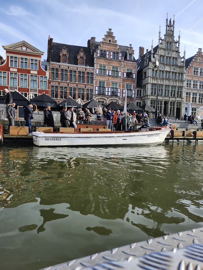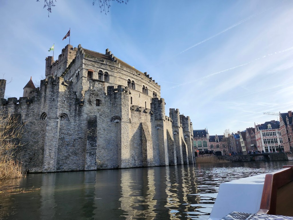 The tour continues and eventually passes through St. Veerlepein Square, next to Gravensteen Castle, where you will learn of it’s dark past as an execution site and how it is now a happier place– the square lights are connected to the local maternity ward and flash when a child is born. Across the cobblestone street is Gravensteen Castle, built in the 12th century and home to the Counts of Flanders for 150 years. Once abandoned by the Counts in the 1350’s, it was repurposed as a court, prison, mint, cotton mill and many other uses. It is worth visiting after the walking tour, you only need an hour (or less if you rush) to learn it’s history and get a great view of the city from the roof. Once the tour concludes, you will have time to tour on your own and I recommend you return back to the Korenlei & Graslei riverbank and take a boat ride. It offers a unique view of Ghent from the water! If not your thing, grab a bite and a cherry kriek lambic beer and people watch on the busy riverbank.